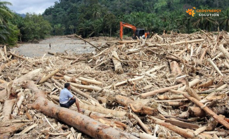 Water Recedes, Timber Log Evacuation in Sumatra Accelerated